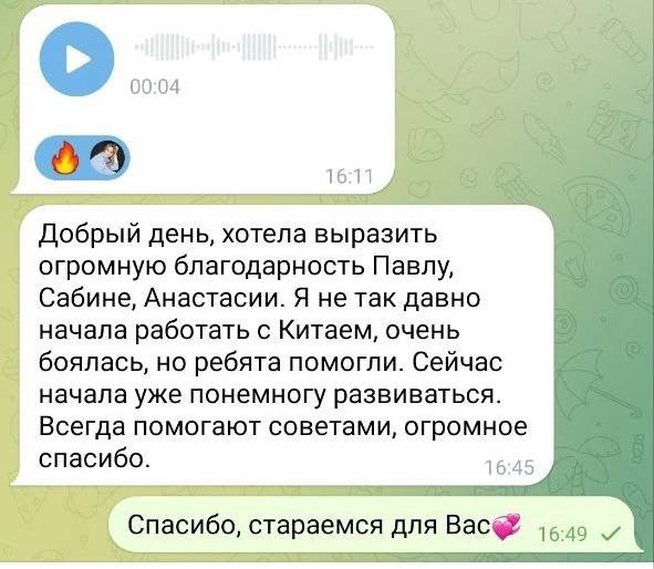 Ваши интересы под персональным контролем руководителяРуководитель компании лично курирует ключевые процессы. Это означает, что любые вопросы — будь то задержки на границе, сложности на производстве или срочные изменения — решаются оперативно и без рисков для вашего бизнеса.